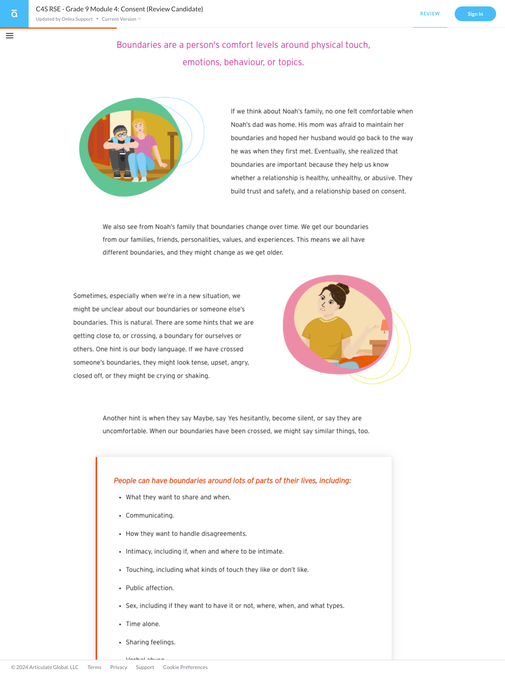 Based on a robust curriculum and narrative outline developed by the Centre for Sexuality team, Onlea produced four courses, three for junior high (Grades 7, 8, and 9), and one for high school students, each consisting of four modules.