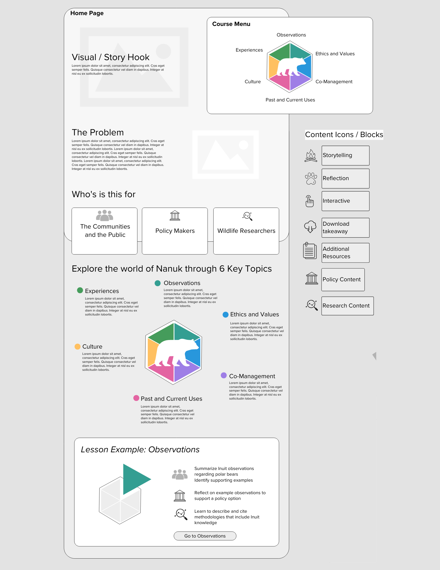 Onlea delivered a set of module blueprints which the Nanuk team used as a guideline for organizing content into a prototype course website over the following weeks.